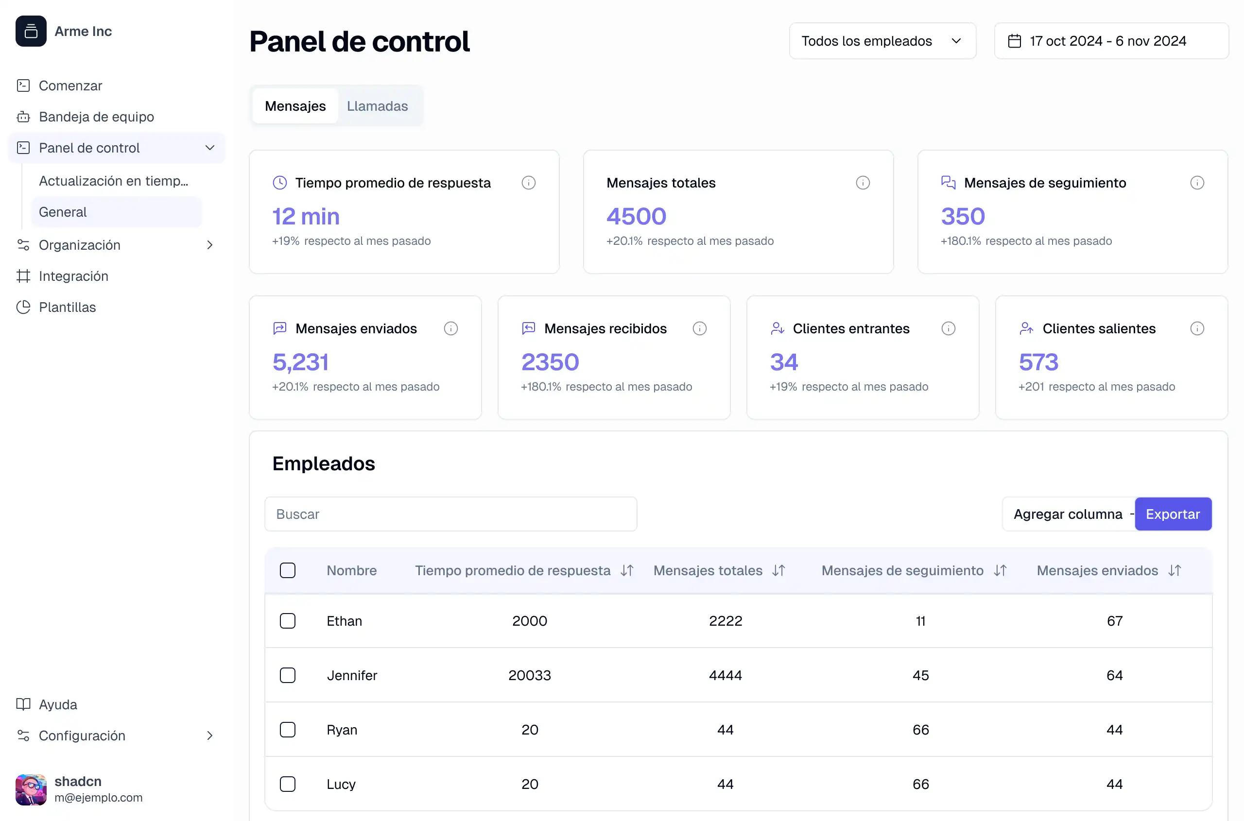 | Tiempo de respuesta promedio | ¿Cuánto tardan los representantes en responder? | Respuestas más rápidas = conversiones más rápidas |